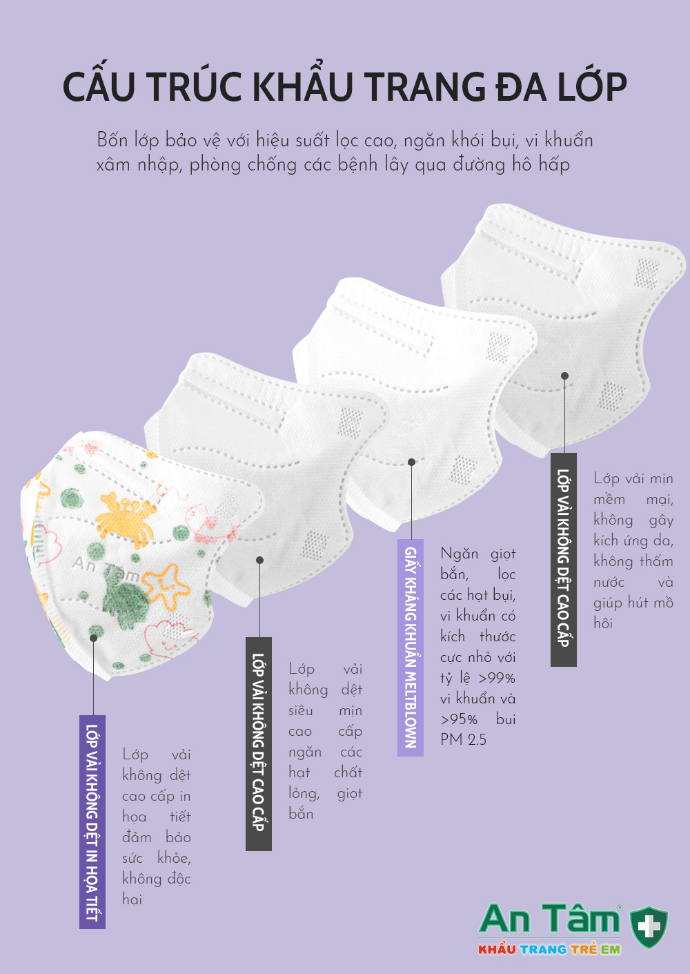 - Cấu trúc lọc đa lớp: phòng ngừa bụi mịn, vi khuẩn